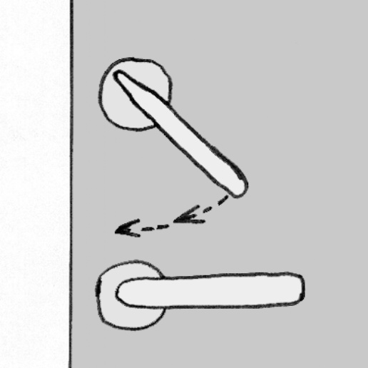Vinkelhake fastmonterad på vred till ytterdörrs insida. Underlättar vridmomentet vid låsning och upplåsning.